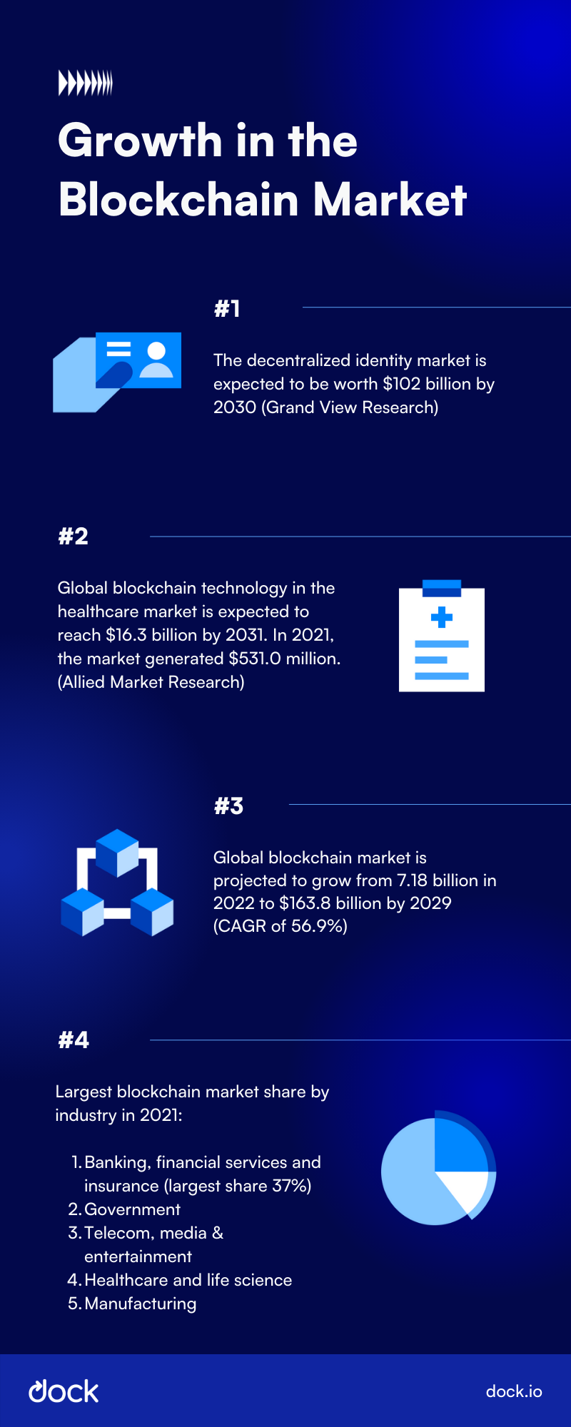 Before diving into Dock’s achievements and development highlights, we’ll go over some key industry trends and problems that our tech can solve. Dock’s Verifiable Credential and Decentralized Identifier (DID) solutions are powered by blockchain technology and they can be applied to a variety of sectors and use cases.
