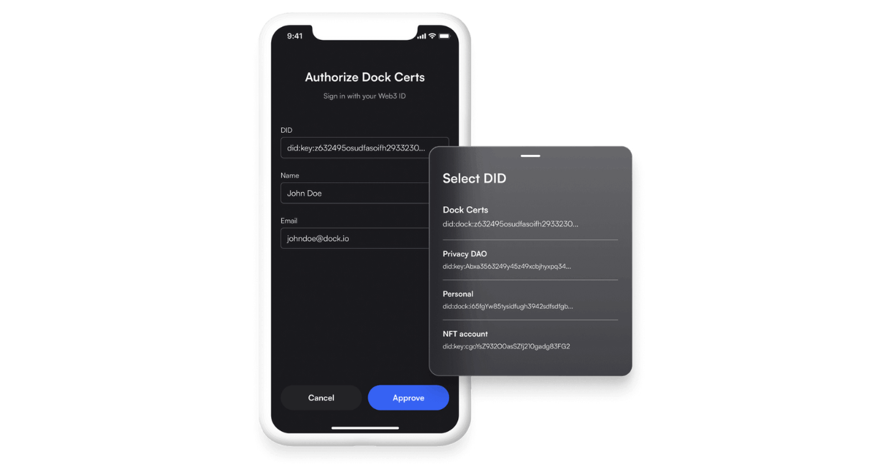 Dock’s decentralized digital credentials technology complies with World Wide Web Consortium’s (W3C) Verifiable Credentials Data Model 1.0, which provides a standard to express credentials on the web in a way that is cryptographically secure, privacy-respecting, and machine-verifiable. W3C is an international community where member organizations, full-time staff, and the public work to set international standards for the World Wide Web. The organization also created standards for Decentralized Identifiers, URL, and others.