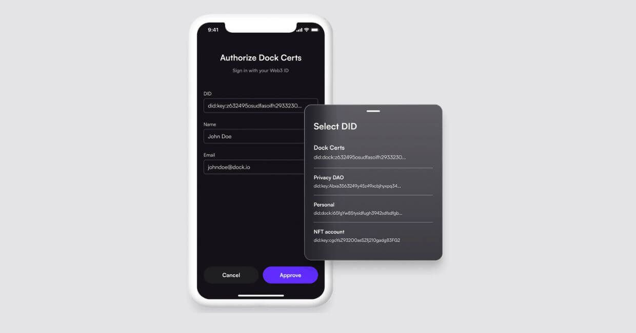 Decentralized identity is a type of identity management that allows people to generate and control their own digitial identity without depending on a specific service provider. Web3 is about ownership and by using Dock’s technology, individuals can now truly own their most important documents and IDs and regain control over their data.