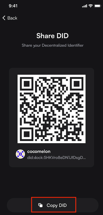 Step 2: Copy the DID and share it where you want.