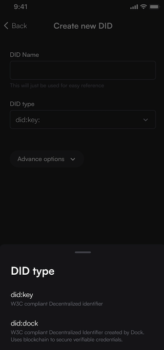 Step 4: Choose a DID type. Difference between the two keys: