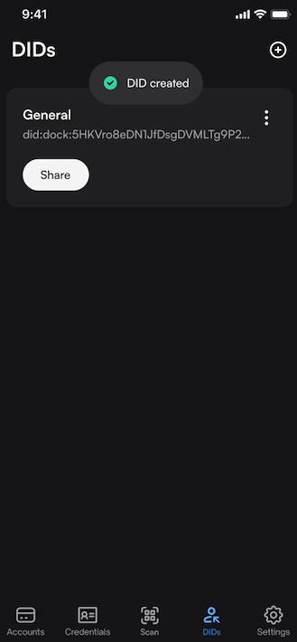 Copy/Share a DID
