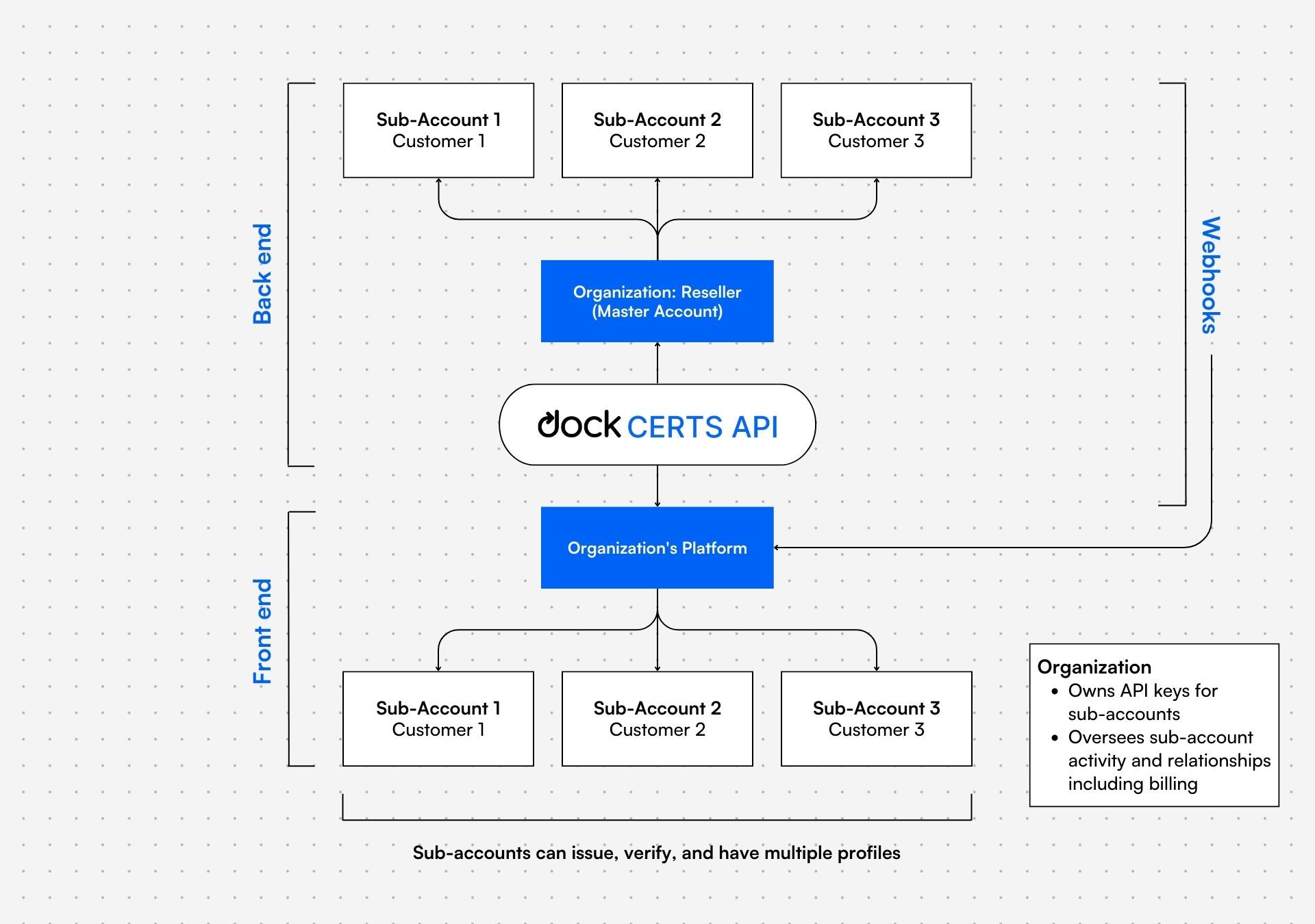 The ability to create sub-accounts is an important feature for many organizations because it provides them with enhanced security, better data segregation, and improved user management capabilities. Sub-accounts are often used by organizations (resellers) offering digital identity and Verifiable Credential features and services to their own customers on their platforms.