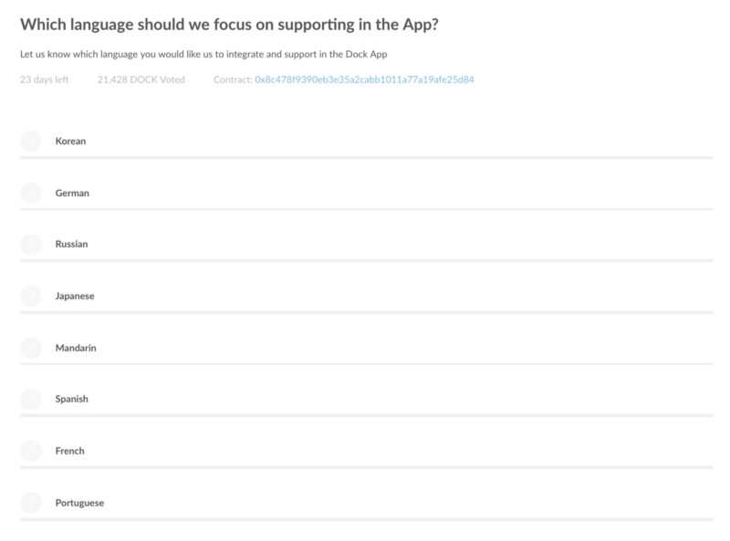 As you can tell from our ever-growing telegram, the dock.io community is very diverse reaching across many countries and continents. In order to better serve those who’d like to use our platform, we are prioritizing translating app.dock.io. Below are the following languages to vote for: