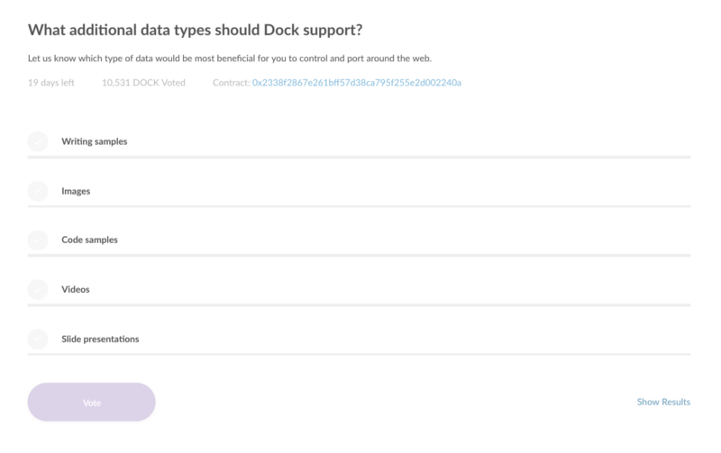 So far we have had three rounds of voting for the Dock community. In the first vote, the community decided when DOCK tokens should be unlocked. The second vote asked what the Dock team should prioritize on the platform next. The third vote invited the community to decide what language Dock should be translated into next and what benefits/features they wanted.