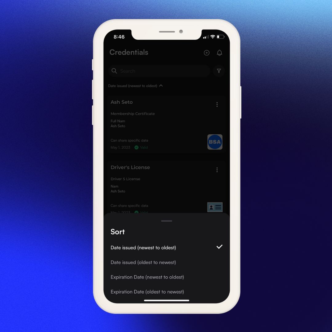 We're excited to announce our new sorting and filtering feature in the Dock Wallet app that makes it easier for users to find and manage their digital credentials.